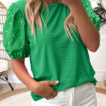 Be the first to review “Bright Green Ribbed Pearl Beaded Puff Sleeve Top”