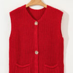Be the first to review “Fiery Red Solid Textured Knit Side Pockets Buttoned Sweater Vest”