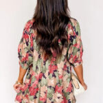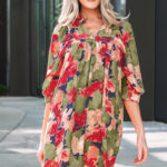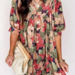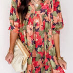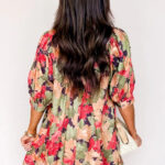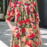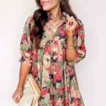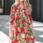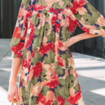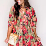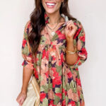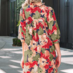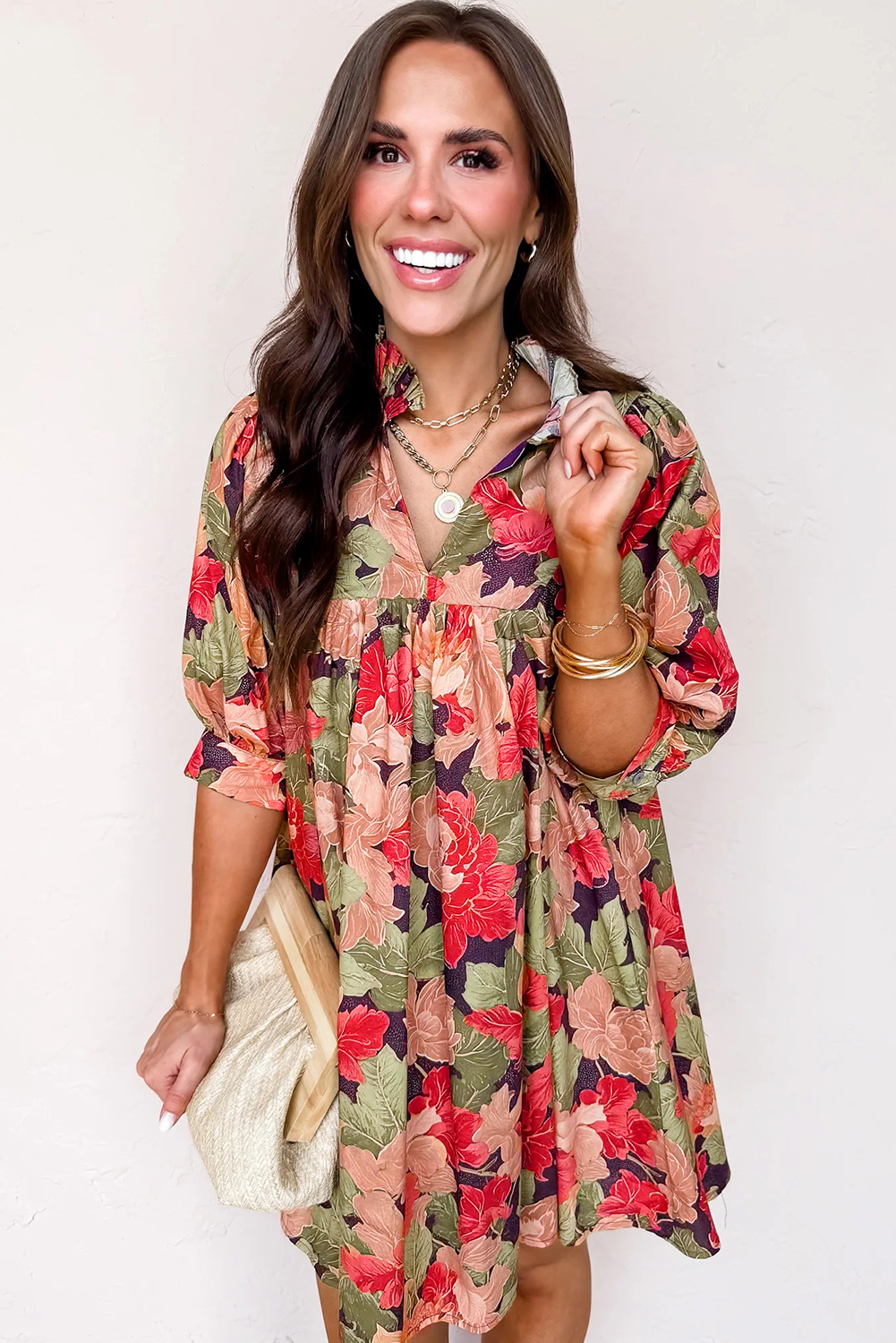 - Chic floral mini dress with a feminine frilled collar and flattering V-neckline.