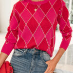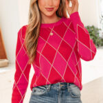 - This versatile sweater features metallic threads geometric patterned silhouette.