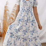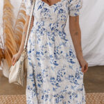 Short puff sleeves add a cute, feminine touch to this floral midi dress.